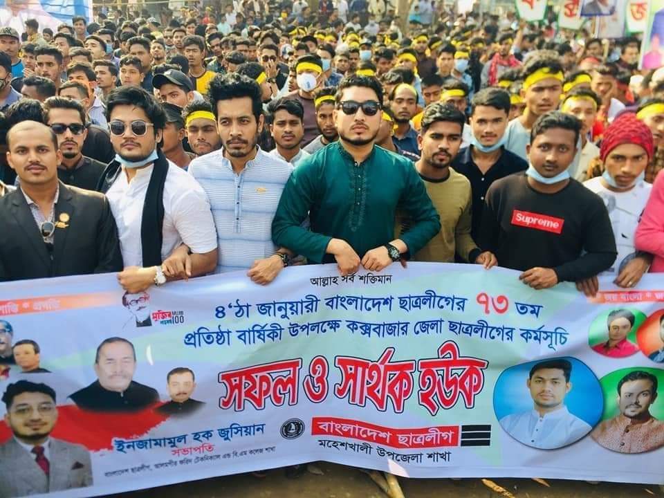 বাংলাদেশ ছাত্রলীগের ৭৩ তম প্রতিষ্ঠা বার্ষিকীতে মোটর শোভাযাত্রা ও শত শত নেতা-কর্মীদের নিয়ে কক্সবাজার জেলা ছাত্রলীগ কতৃক আয়োজিত অনুষ্ঠানে যোগদান করেন মহেশখালী আলমগীর ফরিদ টেকনিক্যাল এন্ড বি এম কলেজ শাখার সভাপতি ও উপজেলা ছাত্রলীগ নেতা ইনজামামুল হক জুসিয়ান।