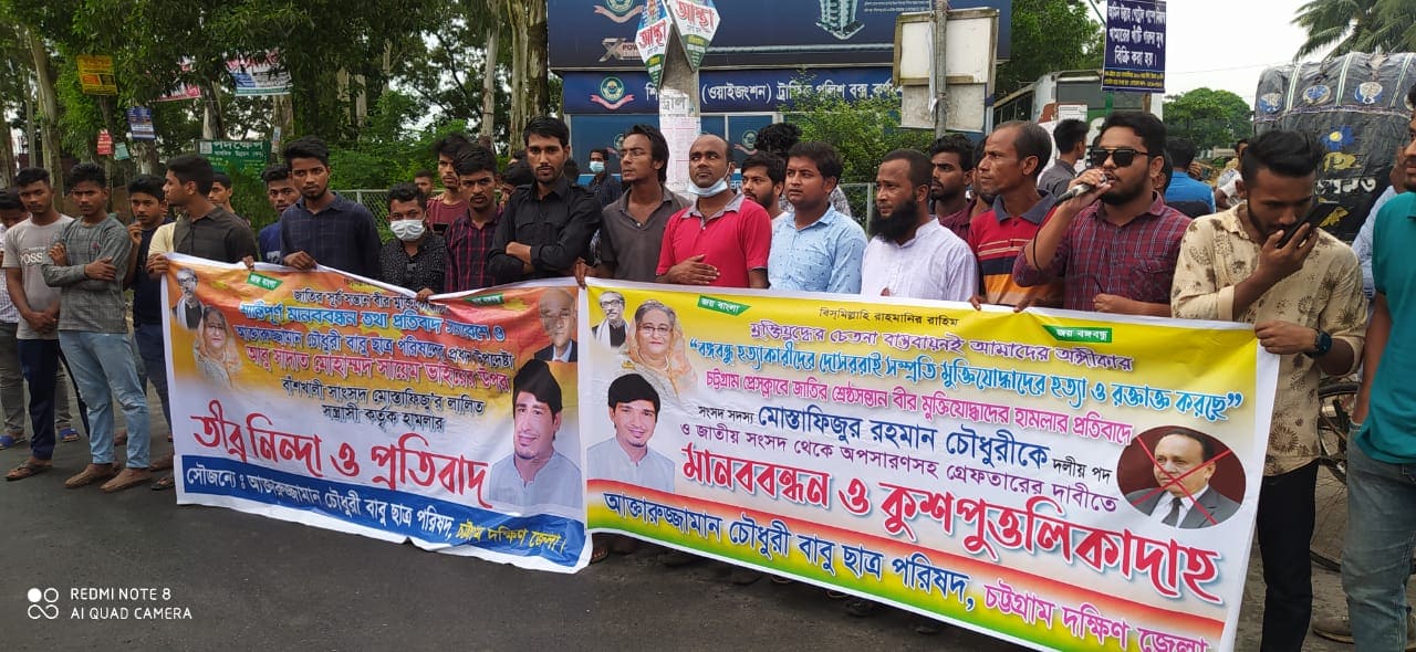 গতকাল মঙ্গলবার (১ সেপ্টেম্বর) কর্ণফুলী সেতুর দক্ষিণ পাড়ের মইজ্জারটেক চত্বরে চট্টগ্রাম প্রেসক্লাবে মুক্তিযোদ্ধা ও সাংবাদিকদের উপর বাঁশখালীর সংসদ সদস্য মোস্তাফিজুর রহমানের ইন্ধনে হামলার প্রতিবাদ ও মোস্তাফিজুর রহমানকে সংসদ ও দলীয় পদ থেকে বহিষ্কারের দাবিতে আখতারুজ্জামান চৌধুরী বাবু ছাত্র পরিষদ চট্টগ্রাম দক্ষিণ জেলার উদ্যোগে মানববন্ধন ও সমাবেশ বক্তারা এ ঘোষণা করেন।