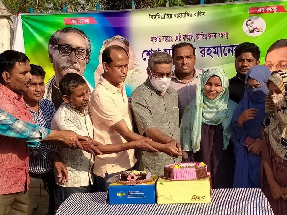 কেক কেটে বঙ্গবন্ধুর জন্মশত বার্ষিকীর অনুষ্ঠানের সূচনা করা হয়।