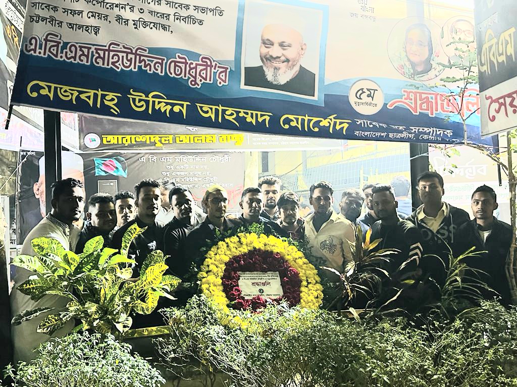 নিজস্ব প্রতিবেদক: চট্টগ্রাম মহানগর আওয়ামী লীগের সাবেক সভাপতি ও চট্টগ্রাম সিটি কর্পোরেশনের সাবেক মেয়র মুক্তিযোদ্ধা এবিএম মহিউদ্দিন চৌধুরীর পঞ্চম মৃত্যুবার্ষিকীর প্রথম প্রহর রাত ১২টায় নগরের চশমা হিল কবরস্থানে মরহুমের কবরে পুষ্পস্তবক অর্পণ করে পাঁচলাইশ থানা ছাত্রলীগ।