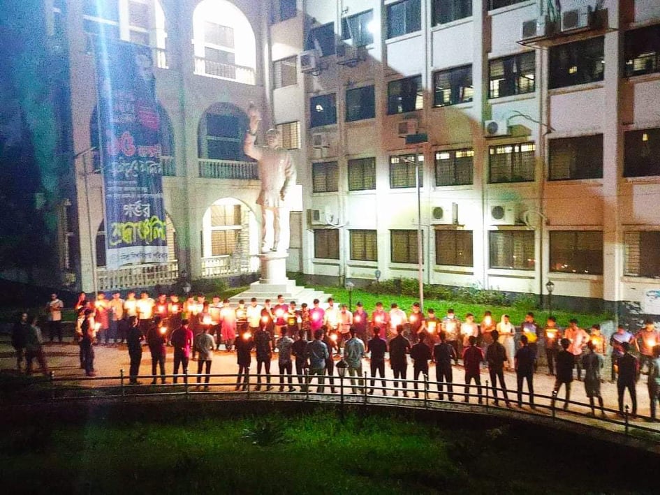 আজ বুধবার (৭ অক্টোবর) সন্ধ্যা ৭ টায় বিশ্ববিদ্যালয়ের বঙ্গবন্ধু ভাস্কর্যের পাদদেশে এ কর্মসূচী অনুষ্ঠিত হয়।