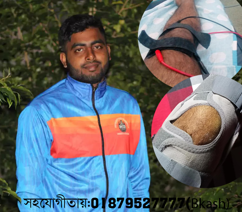 চট্টগ্রাম বিশ্ববিদ্যালযয়ের স্পোর্টস সাইন্স বিভাগে অধ্যয়নরত দ্বিতীয় বর্ষের মেধাবী শিক্ষার্থী মোঃ কামরুল হাসান।দূর্ঘটনাবশত তার ডান পায়ের দুটি লিগামেন্ট ছিড়ে যায় এবং জয়েন্টে ফাটল ধরে।