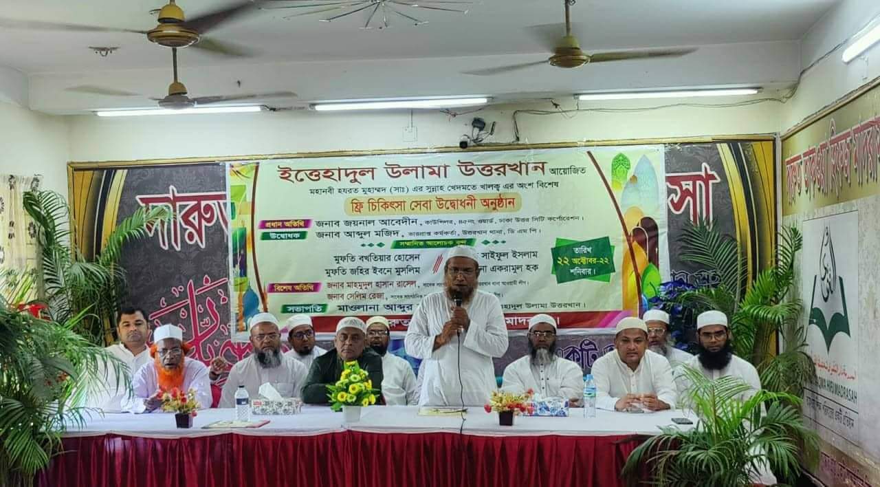 অনুষ্ঠানের সূচনা বক্তব্যে ইত্তেহাদুল উলামা উত্তরখানের সেক্রেটারি মুফতি সাইফুল ইসলাম সংগঠনের পরিচিতি তুলে ধরেন এবং বলেন, ‘ইতোপূর্বে আমরা বন্যাকবলিত সুনামগঞ্জে প্রায় ৮৫,০০০ টাকা পরিমাণের ত্রাণ বিতরণ করি, বন্যা পরবর্তী নেত্রকোণায় মানুষকে ঘড় বানাতে আর্থিক সহযোগিতা করি তারই ধারাবাহিকতায় আজকের ফ্রি চিকিৎসা সেবার উদ্যোগ গ্রহণ করা হয়। উদ্বোধনী দিনে ঢাকা উত্তর সিটি করপোরেশনের ৪৫ নং ওয়ার্ডে ফ্রি চিকিৎসা সেবার আয়োজন করা হয়, আগামী মাসে ৪৪ নং ওয়ার্ড এবং তার পরবর্তীতে ৪৬ নং ওয়ার্ড এমনভাবে সমস্ত উত্তরখানে উক্ত সেবা দেয়া হবে।’